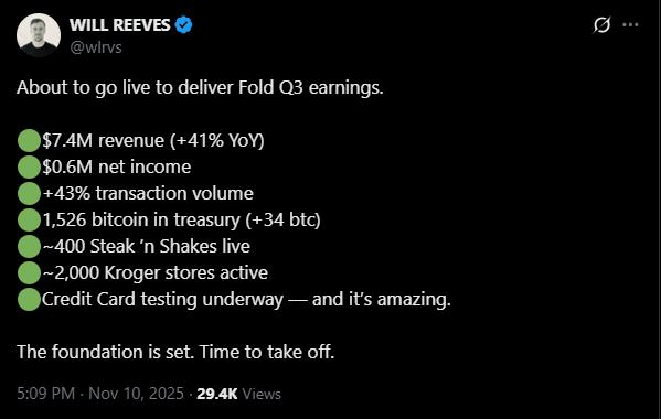 Fold posted a solid third quarter update this week: