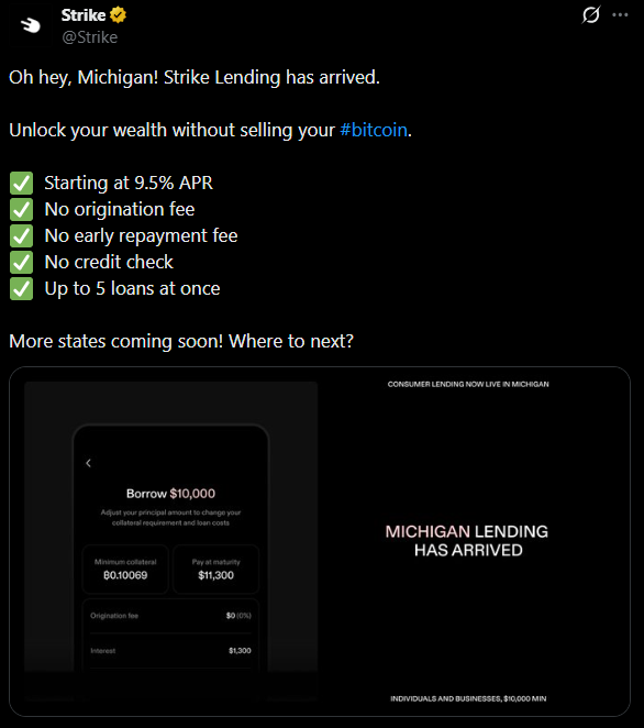Strike now offers lending to customers in Michigan: