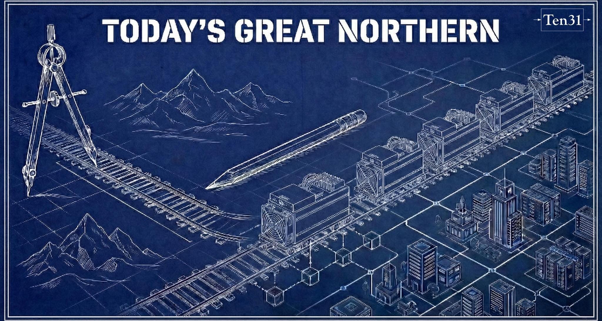 Ten31 draws inspiration from the great networks that turned empty corridors into economic mainlines: railroads, telegraph wires, payment rails, and the early internet. Each began as a skeletal infrastructure and only became indispensable once the hard work of commercializing the opportunity was completed. Among those early networks, the story of James J. Hill and the Great Northern stands out as a blueprint for today’s bitcoin industrialization.